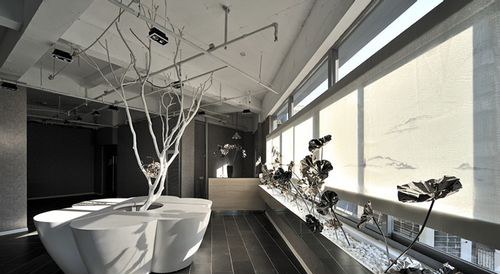 结构层次分明,惯用植物装饰每个角落,结合光改变视觉效果,可以对客户营造一种清新自然的心灵上的冲击,中小型企业都愿偏向这类的风格。